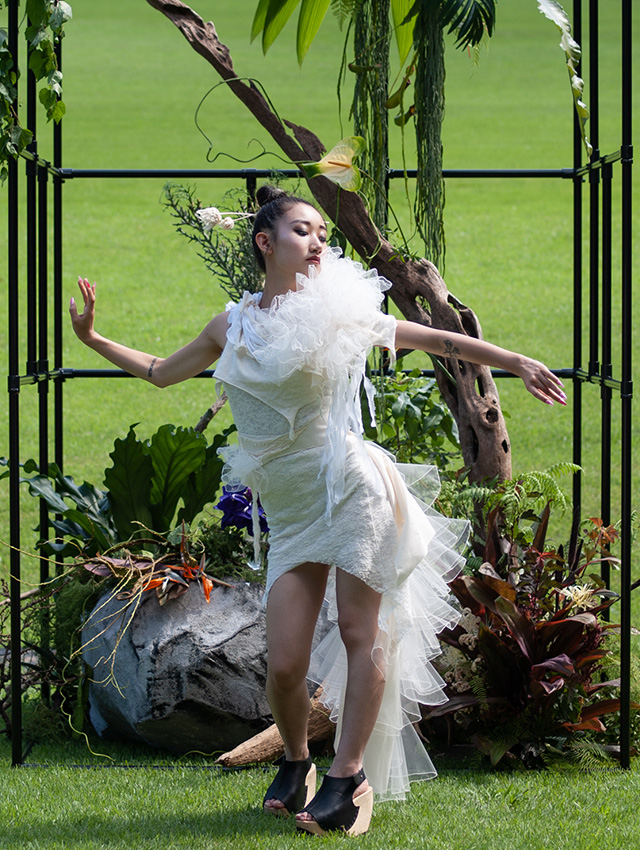 自然の法則や意味を、消化、イメージし、形にする。自然をテーマにしたドレスアート。