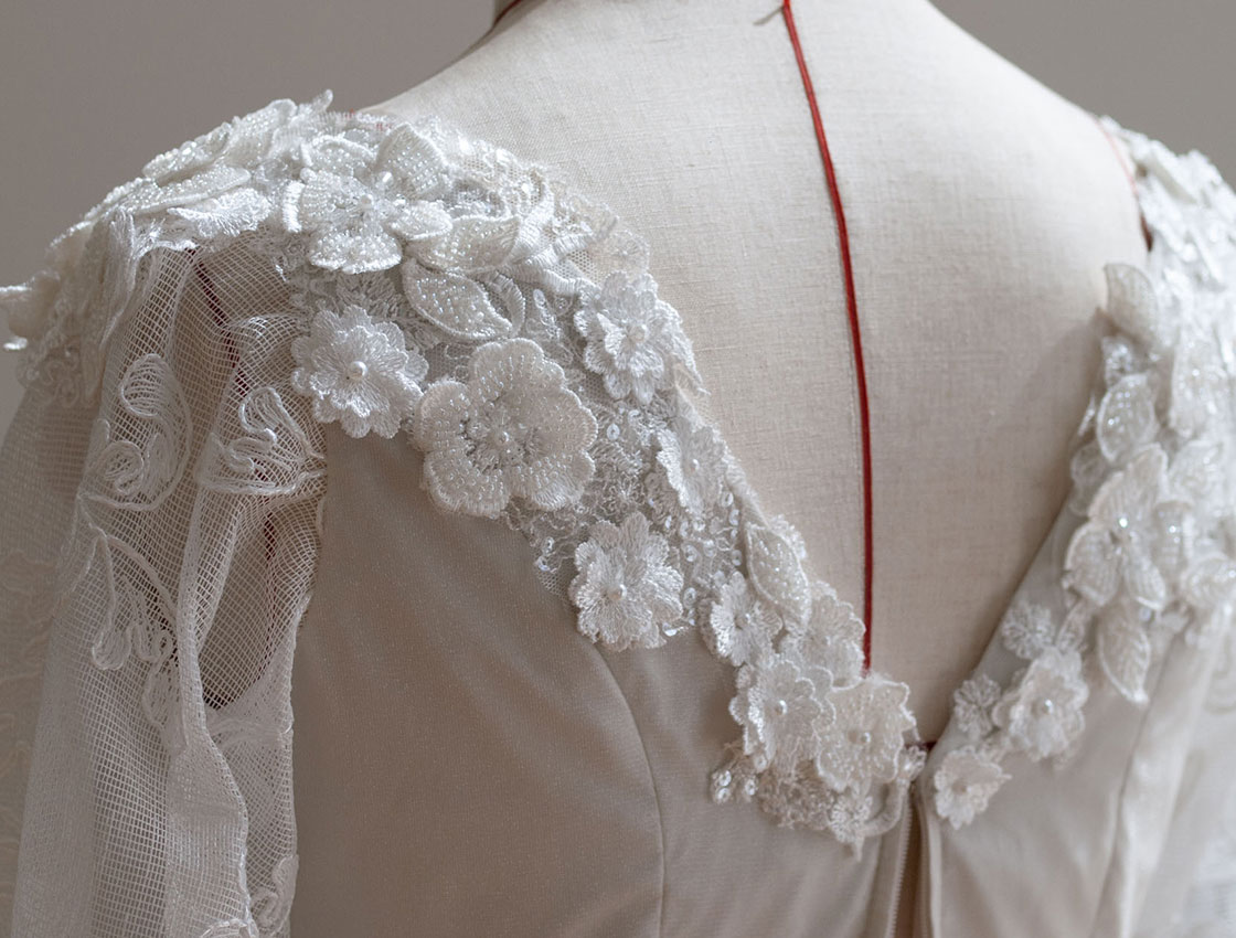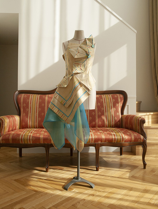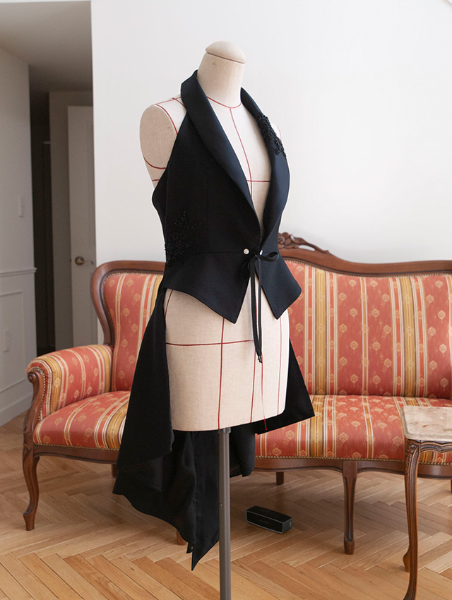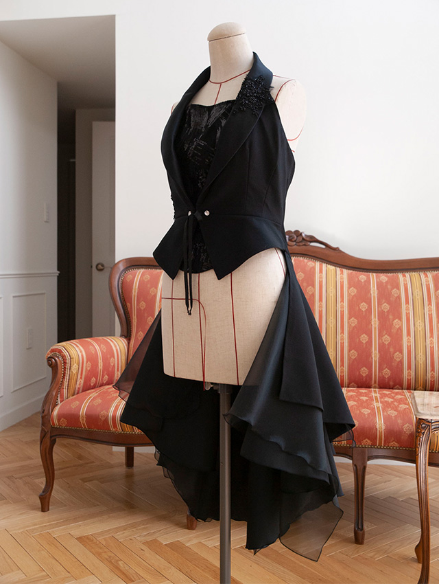 デザイン確定後、試作版を作成。気になる箇所があれば修正します。納得いただけたら出演者さまの採寸を行います。